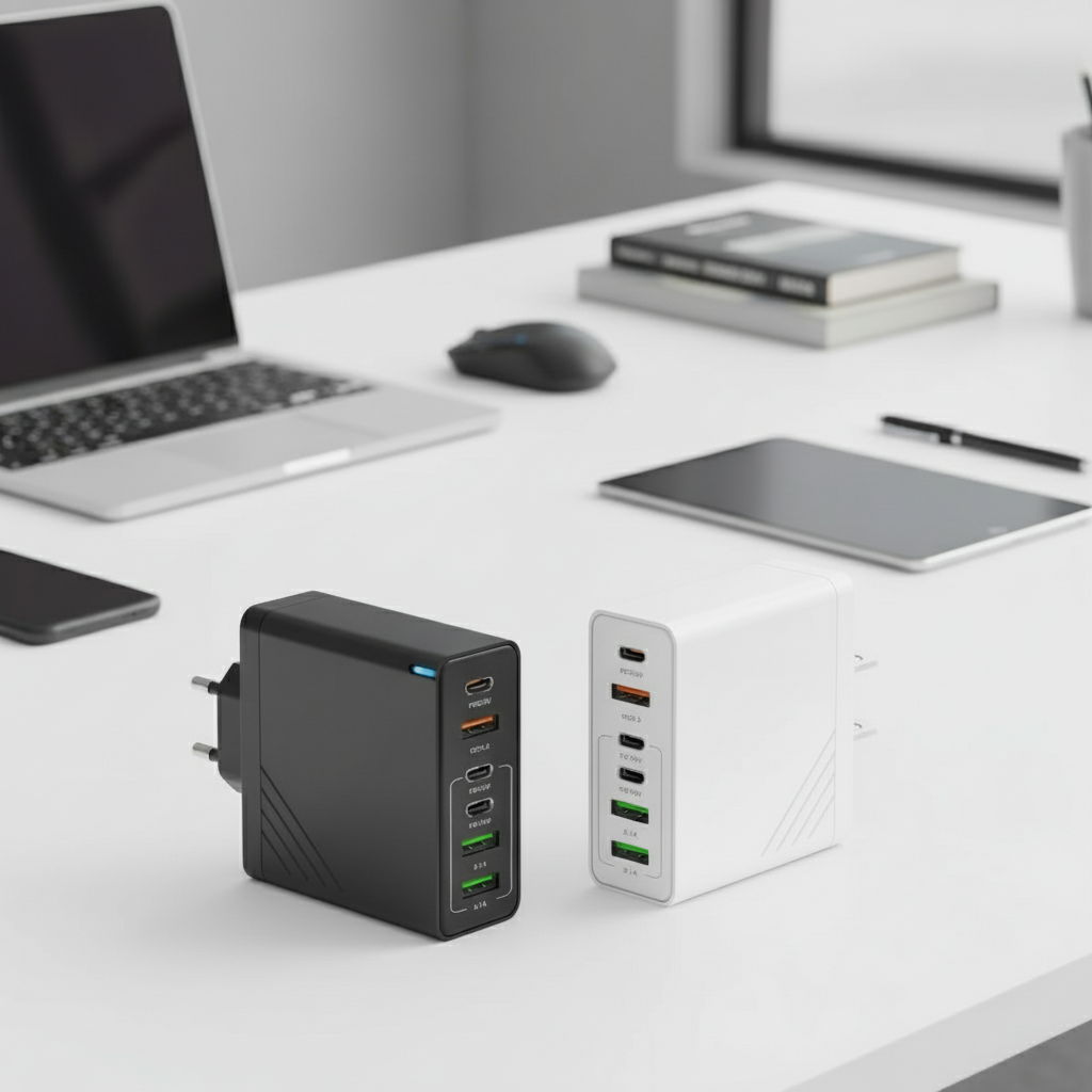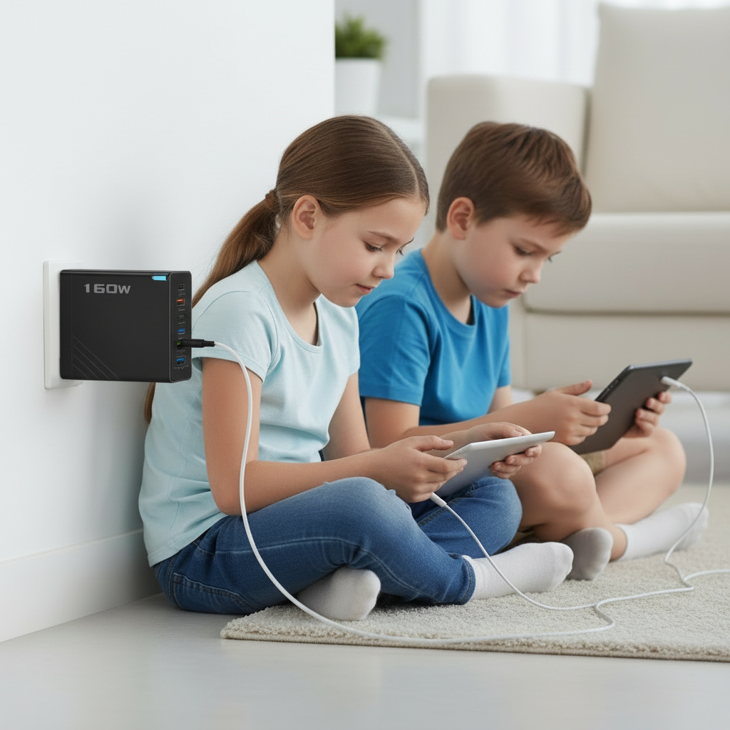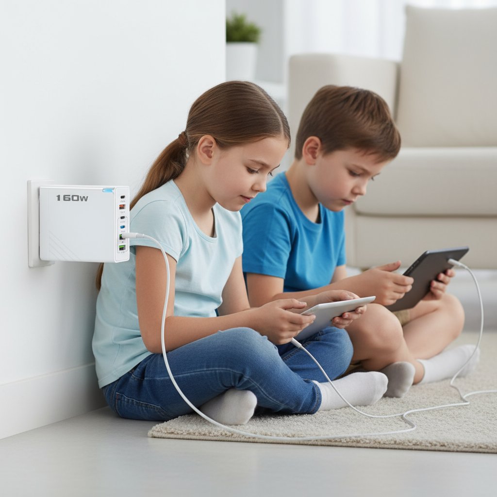 6 Outlets Charging Station, Black, Extra High Power 160W, Box Included