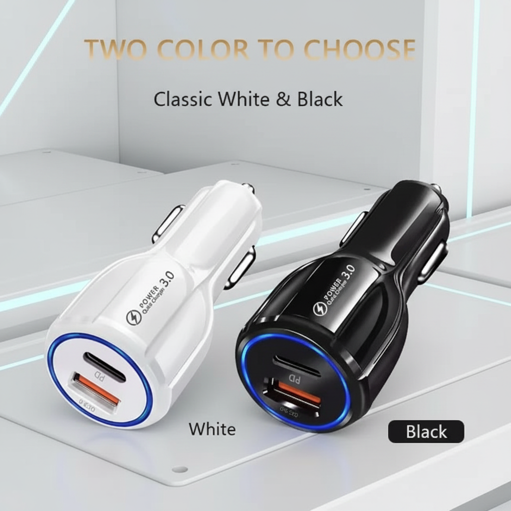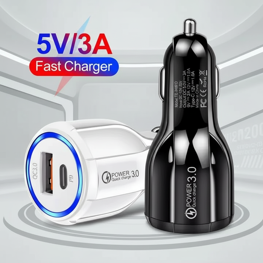 Power up your devices on the go with this dual-outlet car charger designed for modern mobile needs. Featuring both USB and Type-C ports, it delivers rapid 3A charging to smartphones and tablets simultaneously