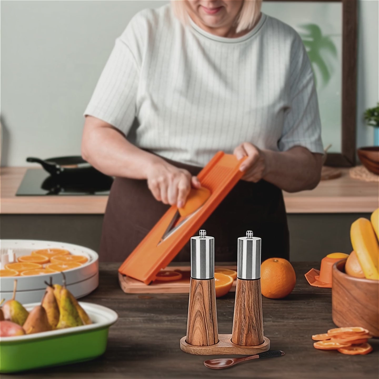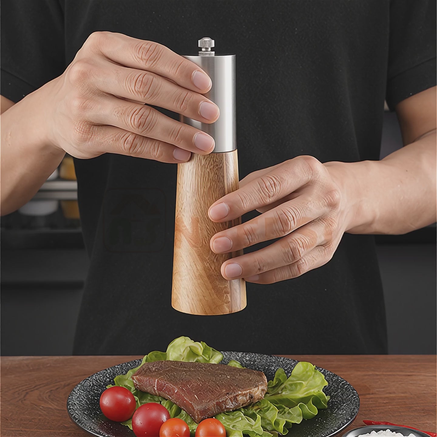 Bring professional-grade spice grinding into your kitchen with this elegant two-piece mill set. Constructed from robust Acacia hardwood and finished with polished stainless steel accents, these 8-inch grinders deliver exceptional performance meal after meal