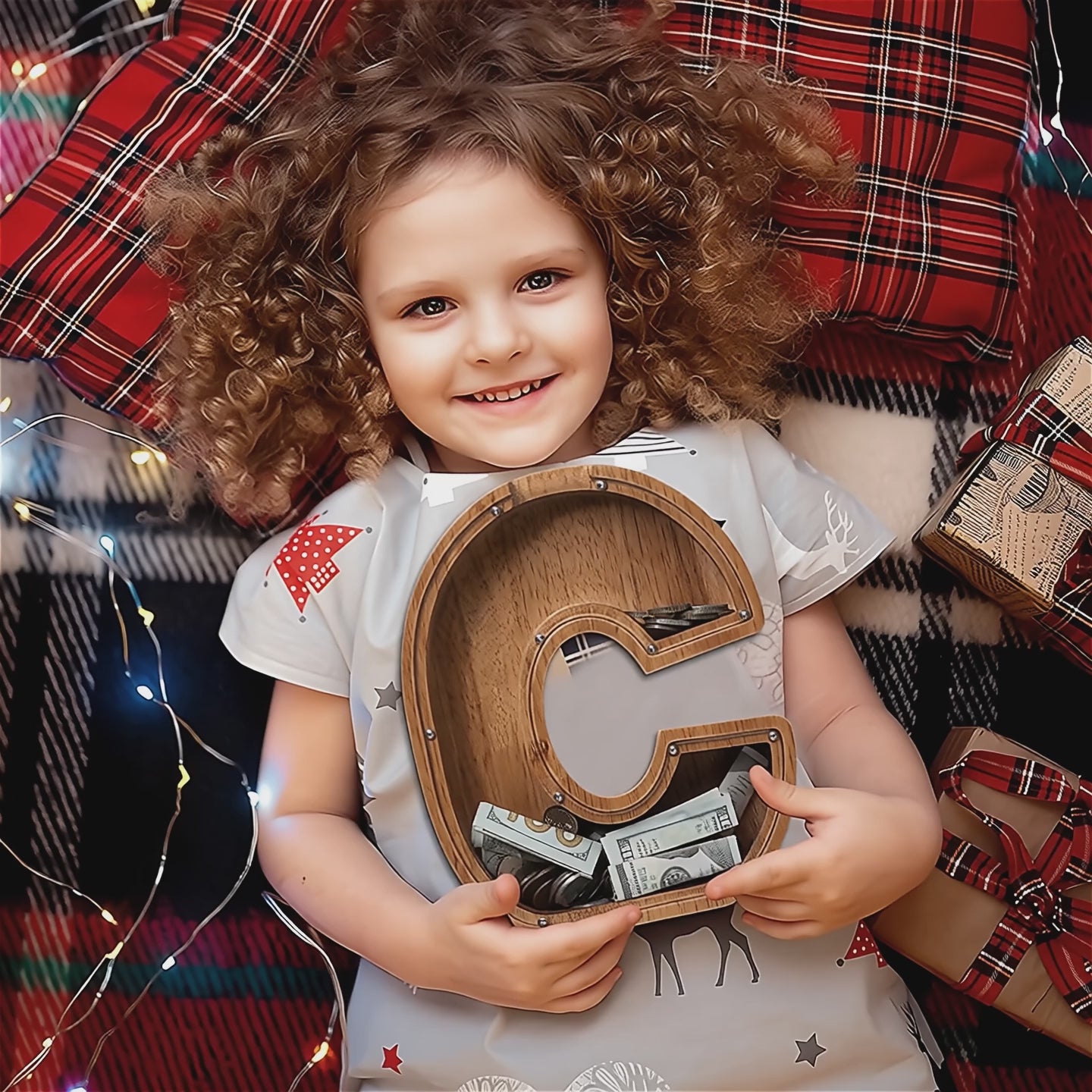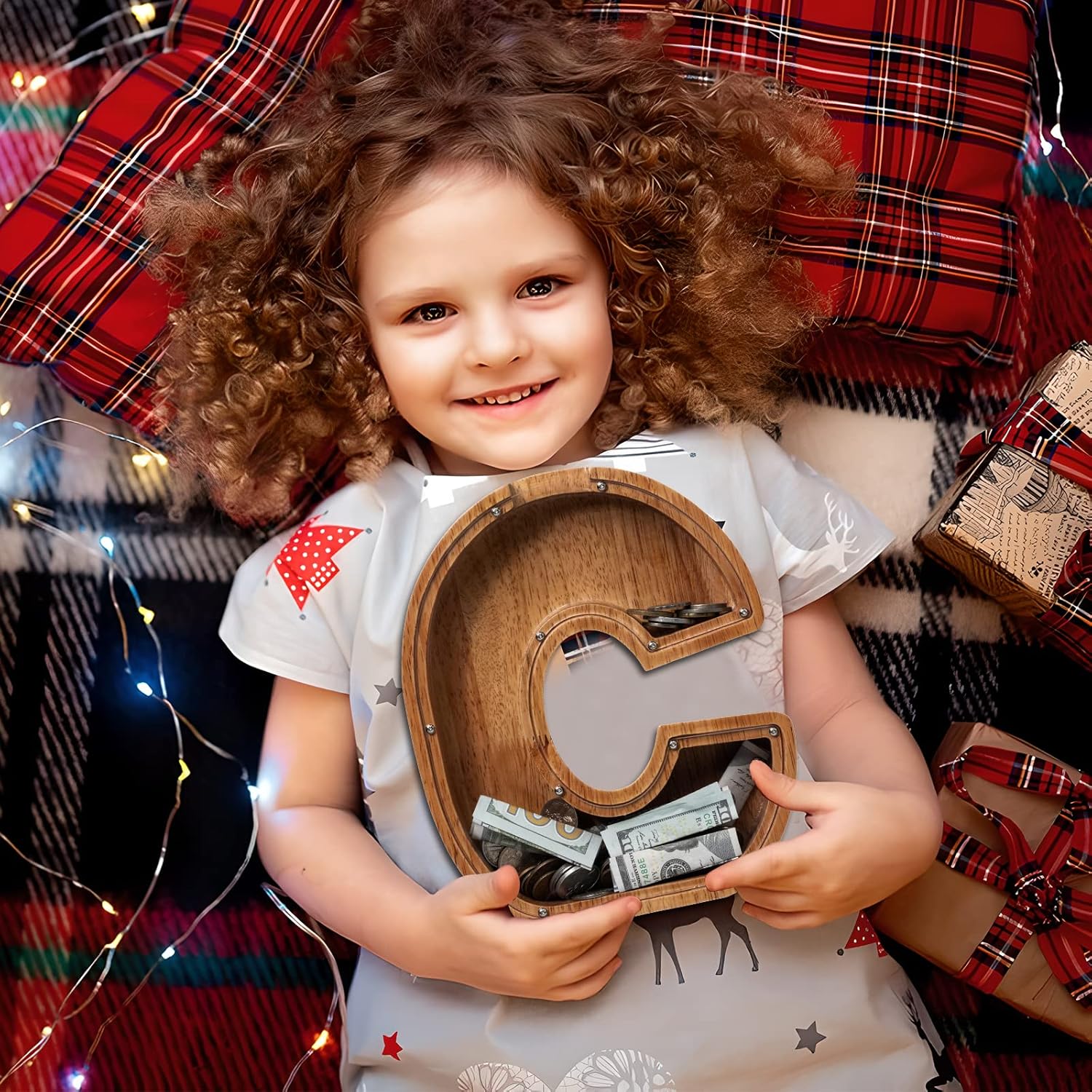 This kids' piggy bank, personalized with the letter "C", makes a delightful gift for birthdays or any celebration