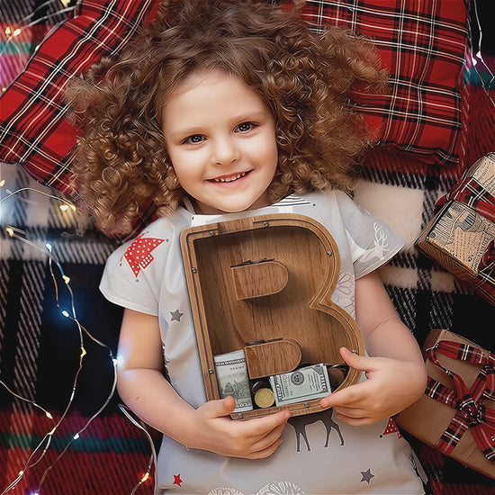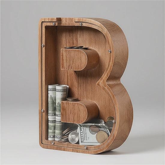 This fun piggy bank is perfect for children or as a stylish home decoration. Featuring the initial "B," it serves as a personalized coin box for saving money
