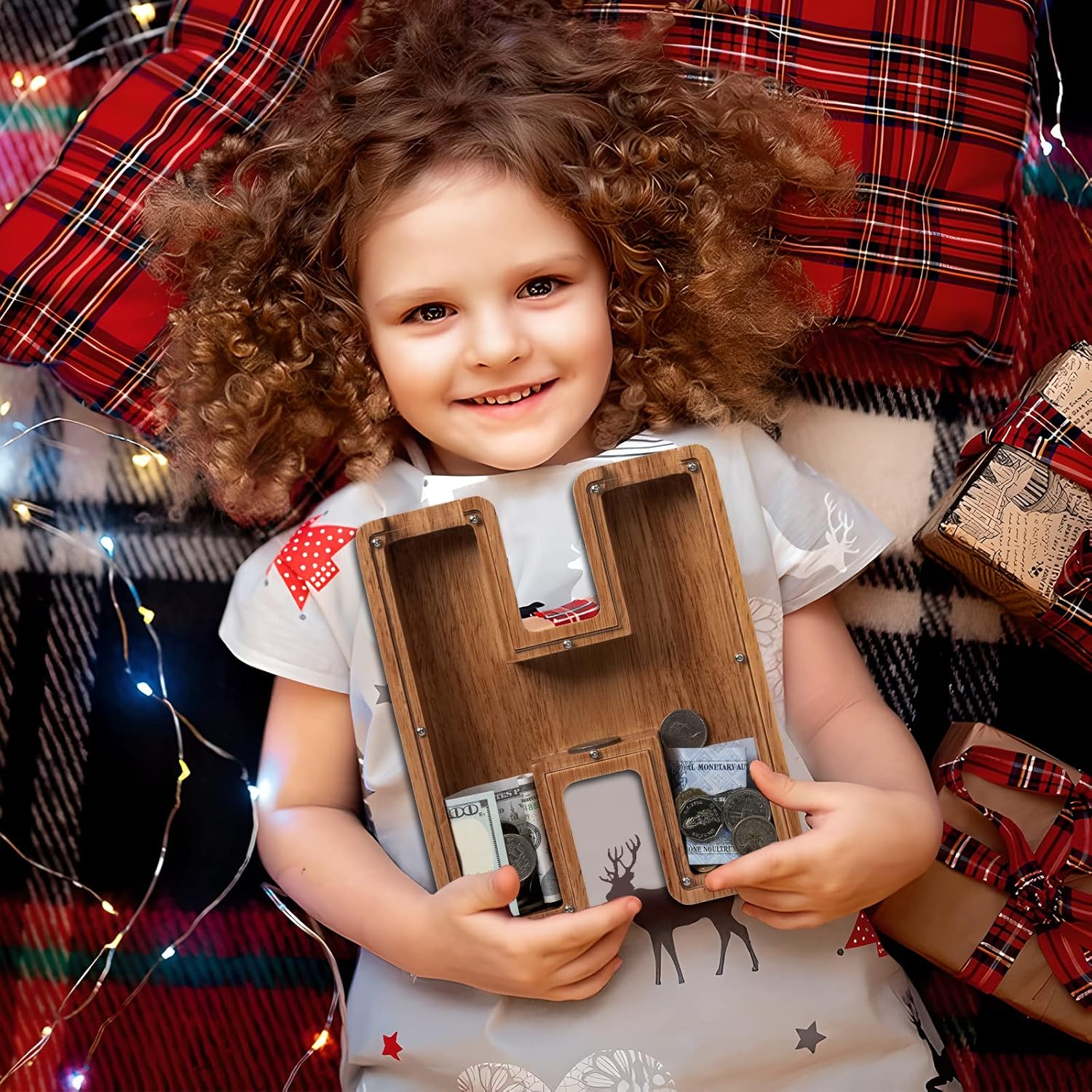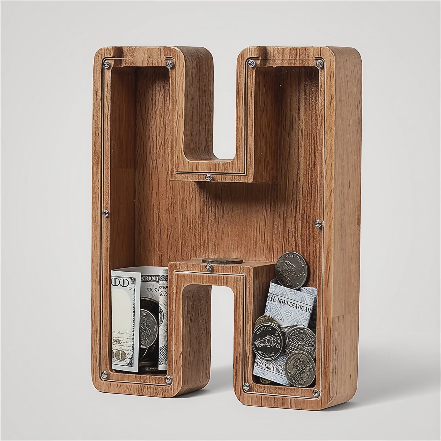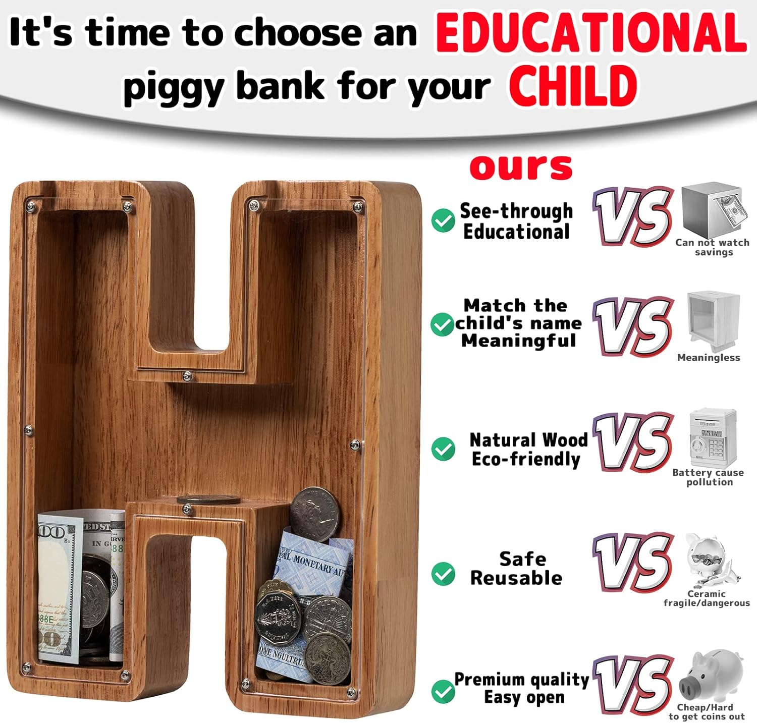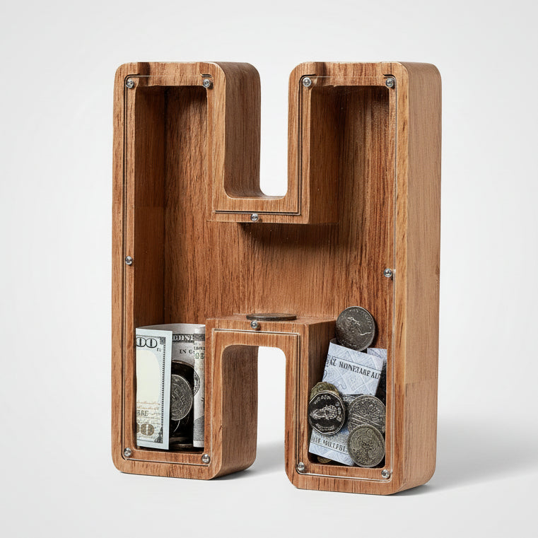 This piggy bank is perfect for children or as charming of home decor. Featuring the initial "H", it serves as a personalized coin box and makes a delightful gift for birthdays or any celebration