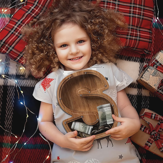This Alphabet Money Bank featuring the initial "S" stands 9 inches tall and makes a charming gift for birthdays or any special occasion
