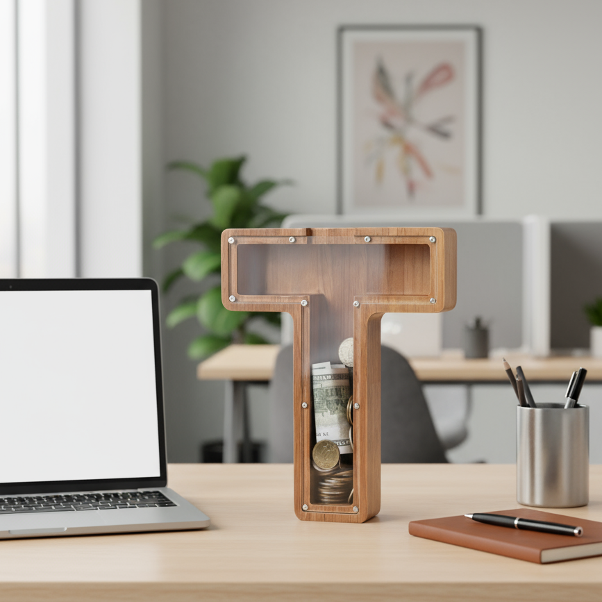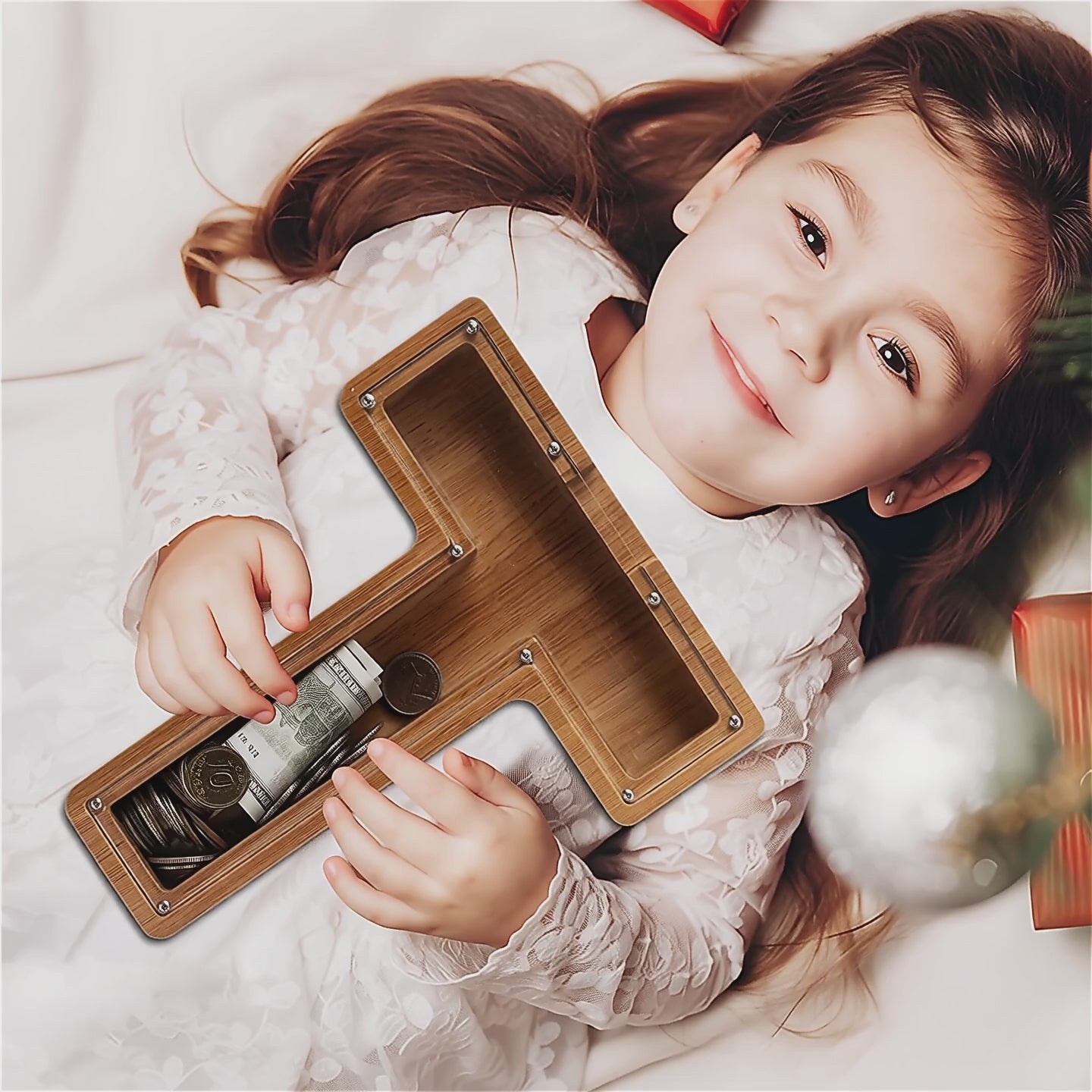 This charming piggy bank is perfect for children or as a unique home decoration. Featuring the initial "T," it serves as a personalized coin box and makes an ideal gift for birthdays or any special event