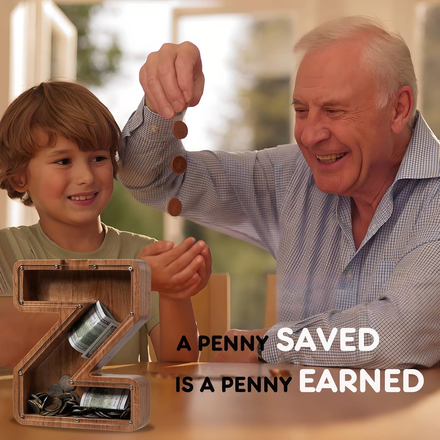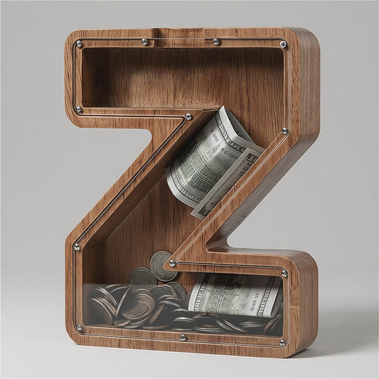 This Alphabet Money Bank featuring the initial "Z" stands 9 inches tall and is perfect for children or as a stylish home accent