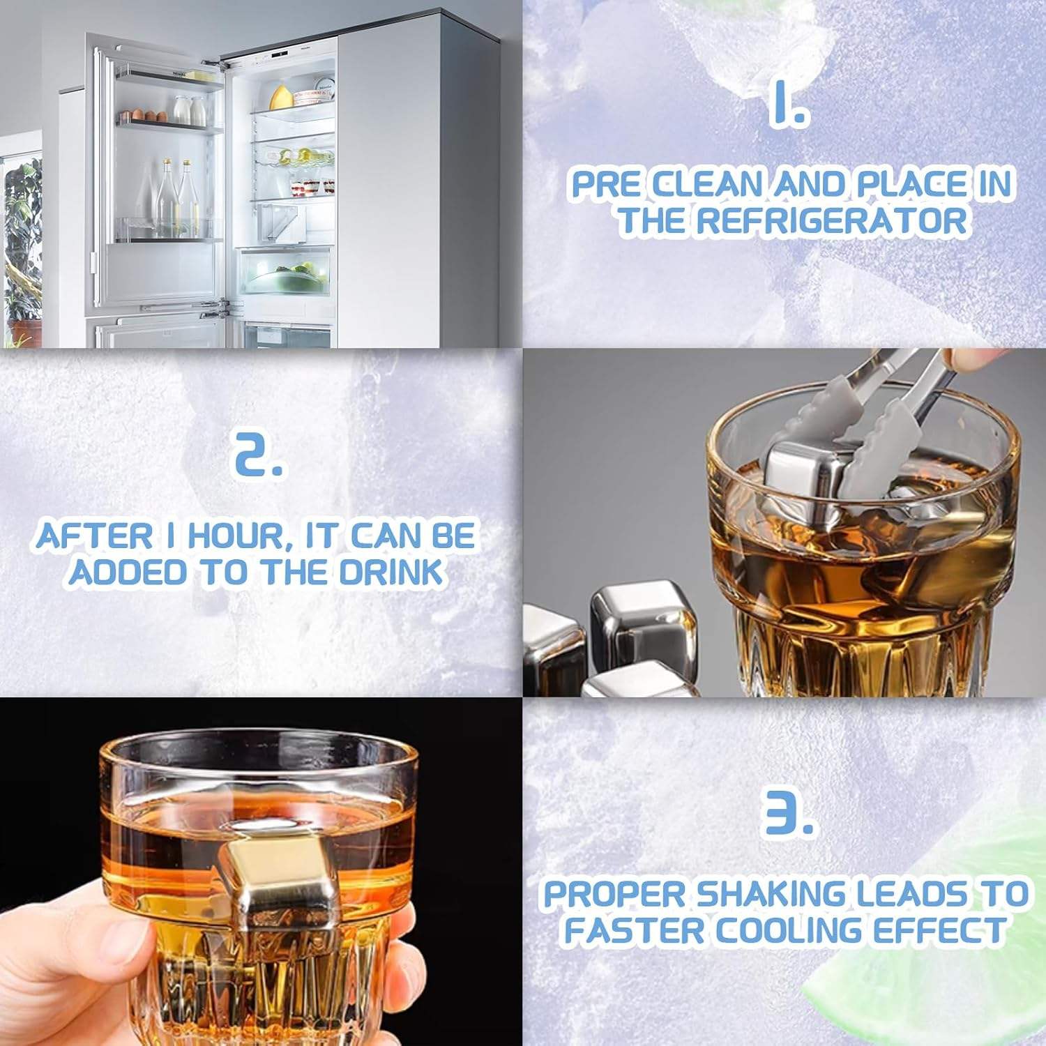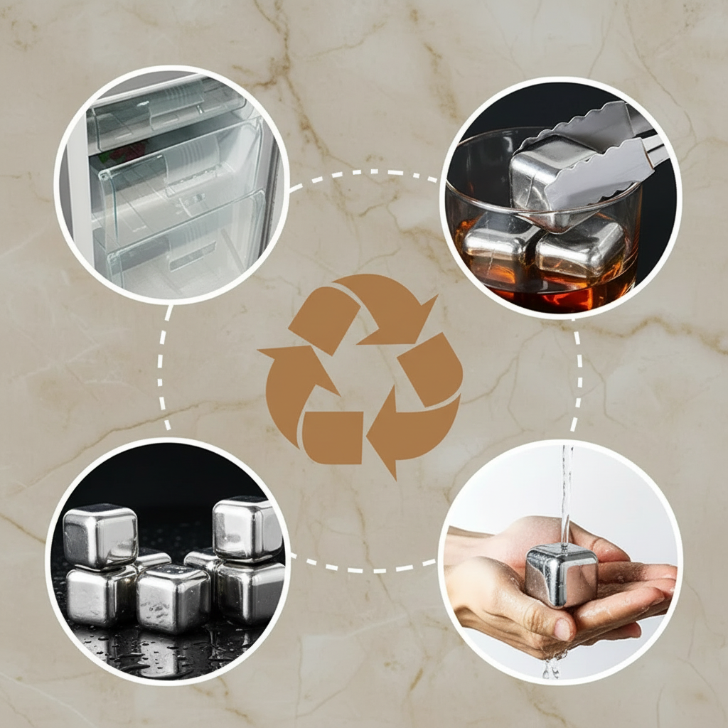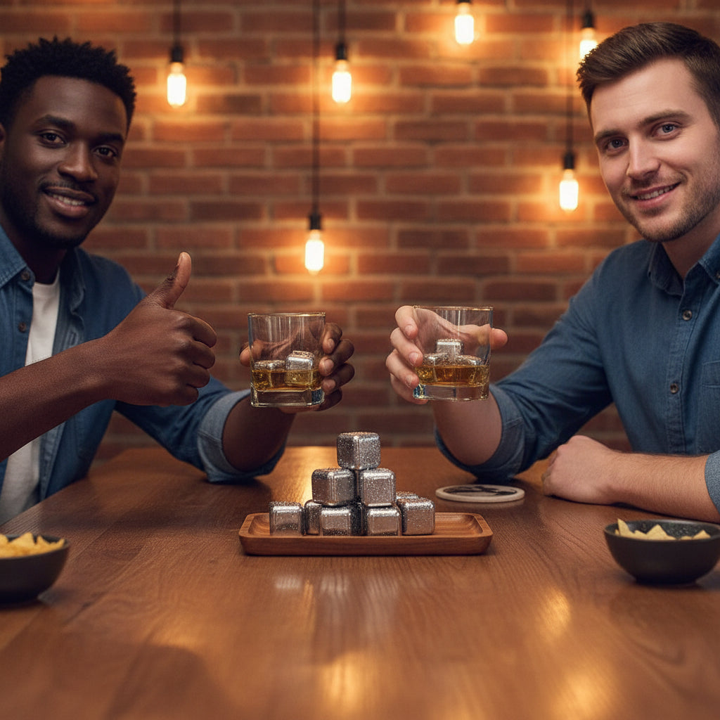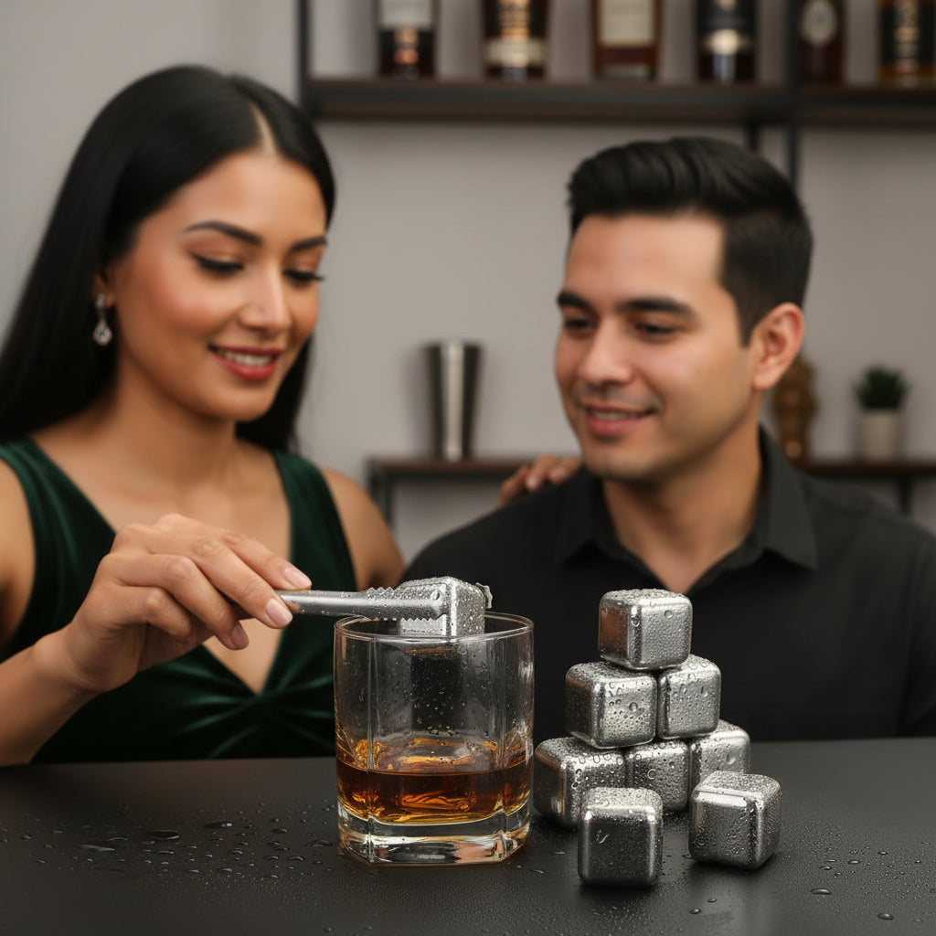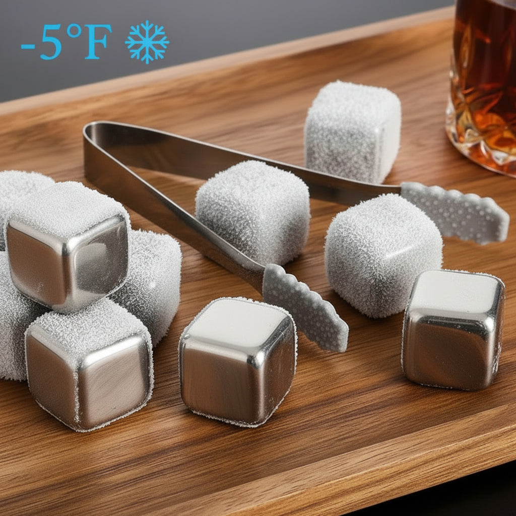 Keep your drinks perfectly chilled without dilution. This premium set features eight 304 stainless steel cubes that maintain their temperature for hours, ideal for whiskey, vodka, wine, and cocktails
