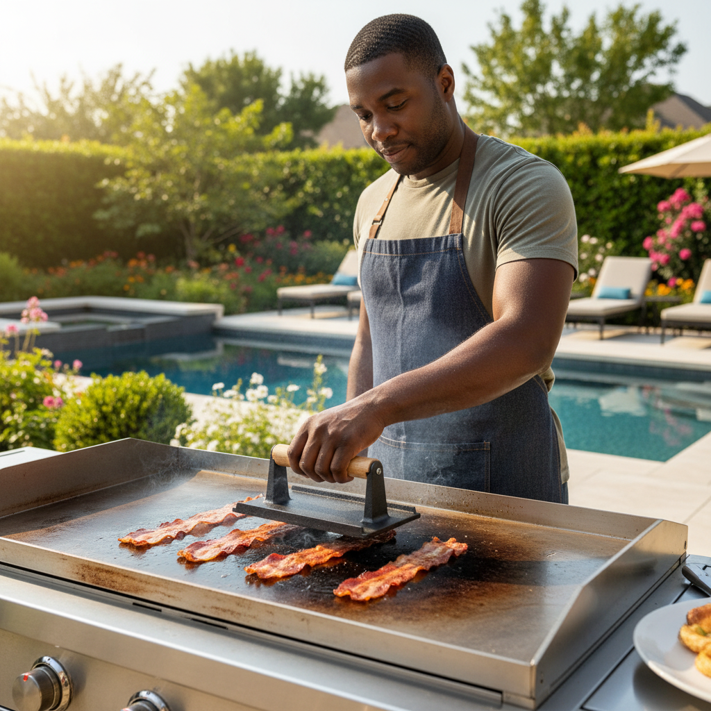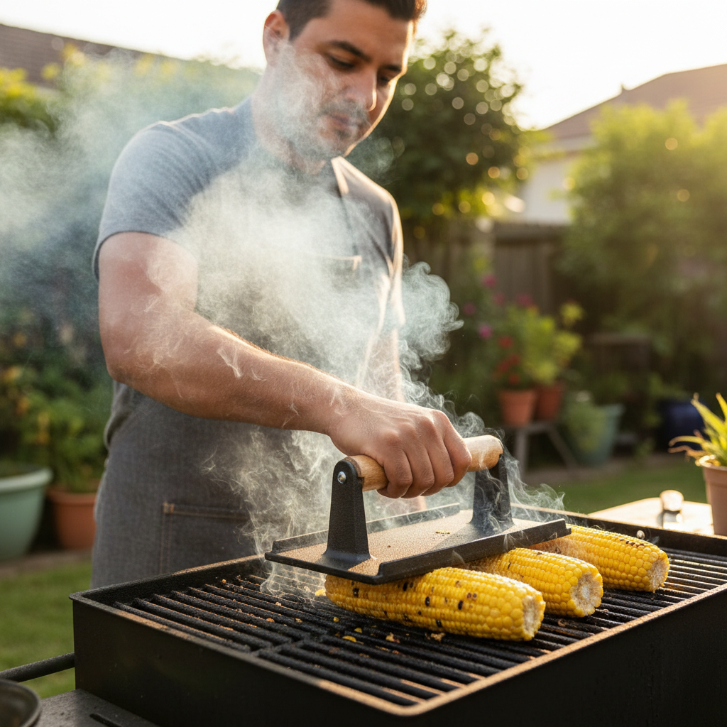 Perfect for pressing bacon, steaks, and veggies, it’s both a stylish and practical addition to your kitchen or outdoor grill