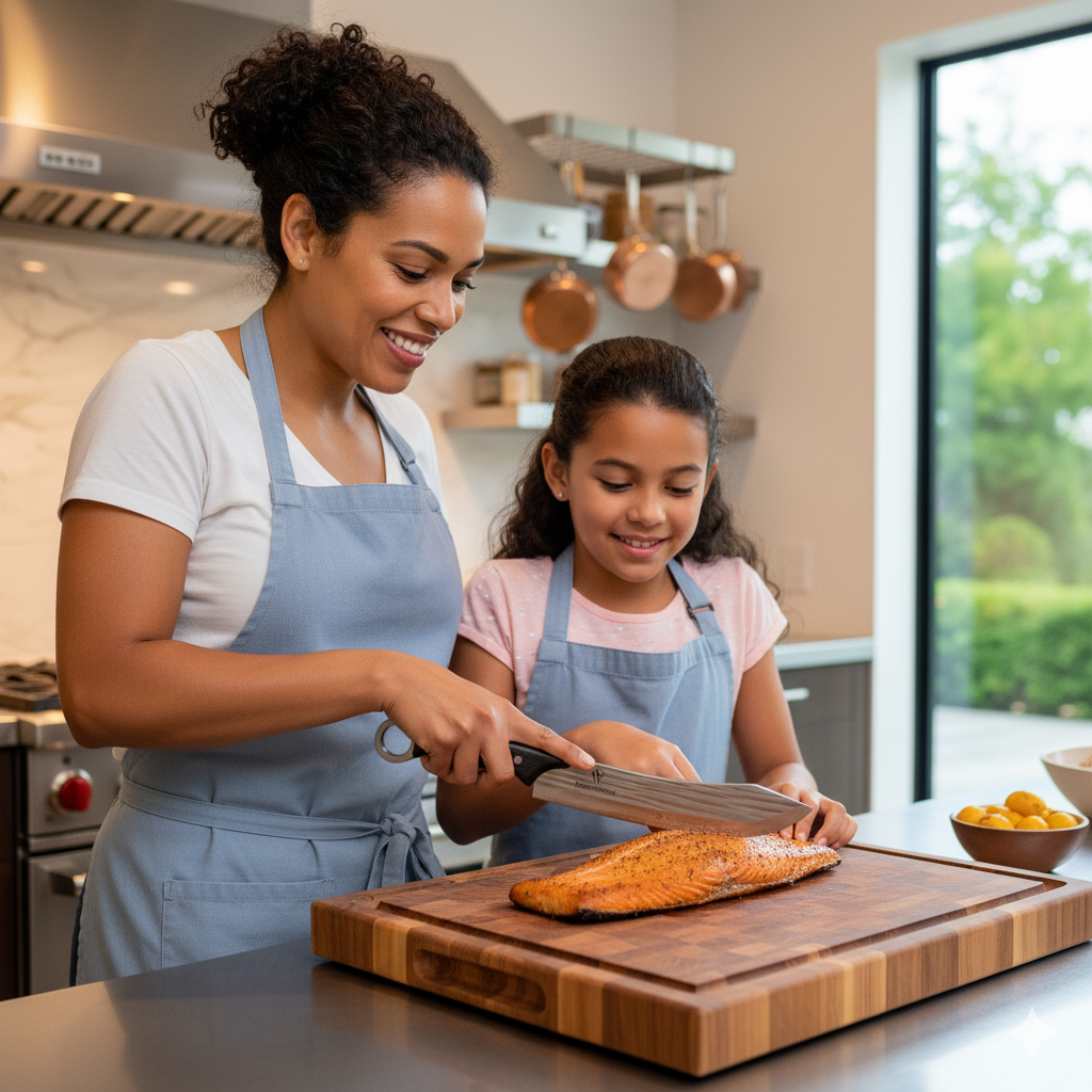 Its sleek design looks sharp and feels great in hand, making it perfect for everything from kitchen tasks to camping and fishing adventures