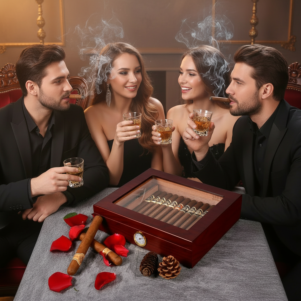 Featuring a built-in hygrometer and humidifier, it ensures your cigars stay perfectly fresh at the ideal 65-70% humidity. More than just a storage box, it’s a bold statement for any cigar lover who demands precision and style