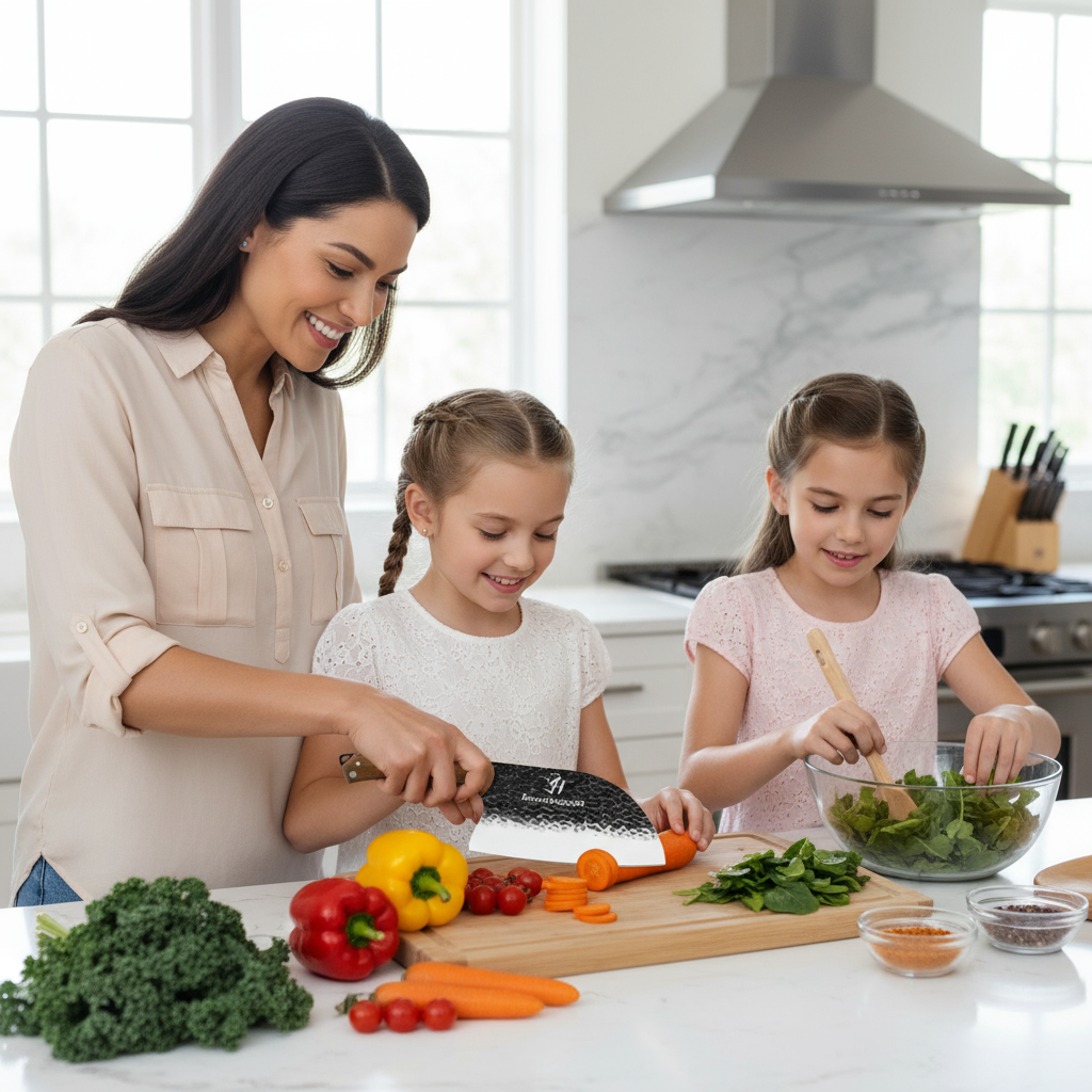 Its 3mm thick edge offers unbeatable balance for slicing meats and vegetables with ease. The handle, crafted from genuine teak hardwood, is robust and built to last