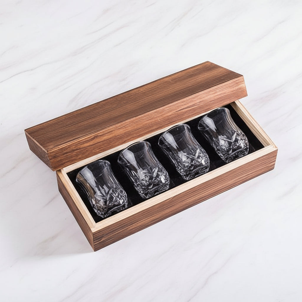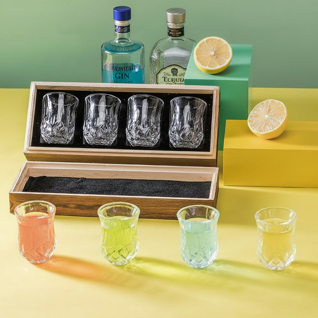 Discover refined elegance with this stunning 4-piece crystal shot glass collection, designed for the discerning spirit enthusiast