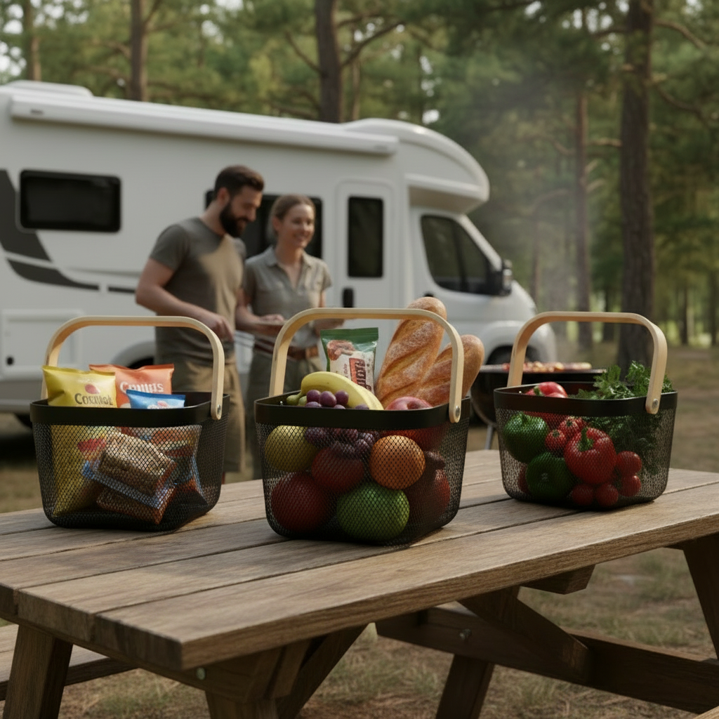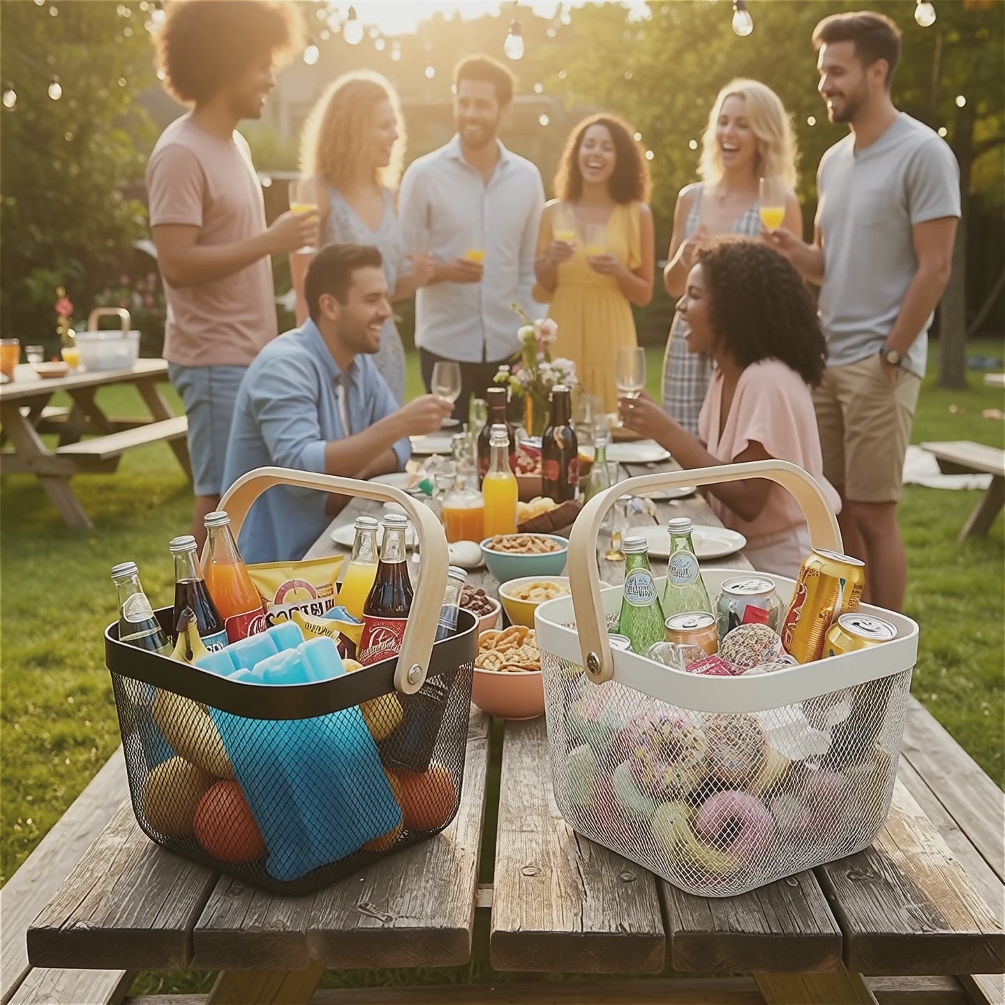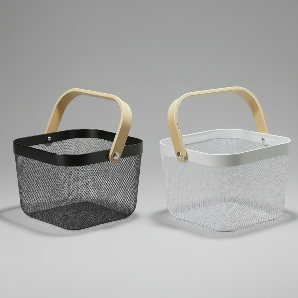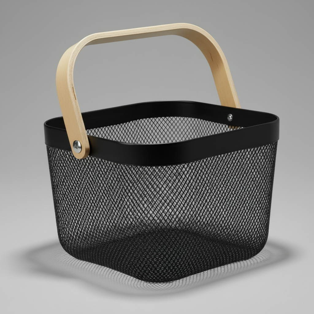 Organize your space with this versatile 12-quart storage basket that combines natural materials with practical design. Featuring sturdy metal mesh construction paired with a Rattan Wood handle, it's perfect for any household storage needs, outdoor adventures, or creative projects