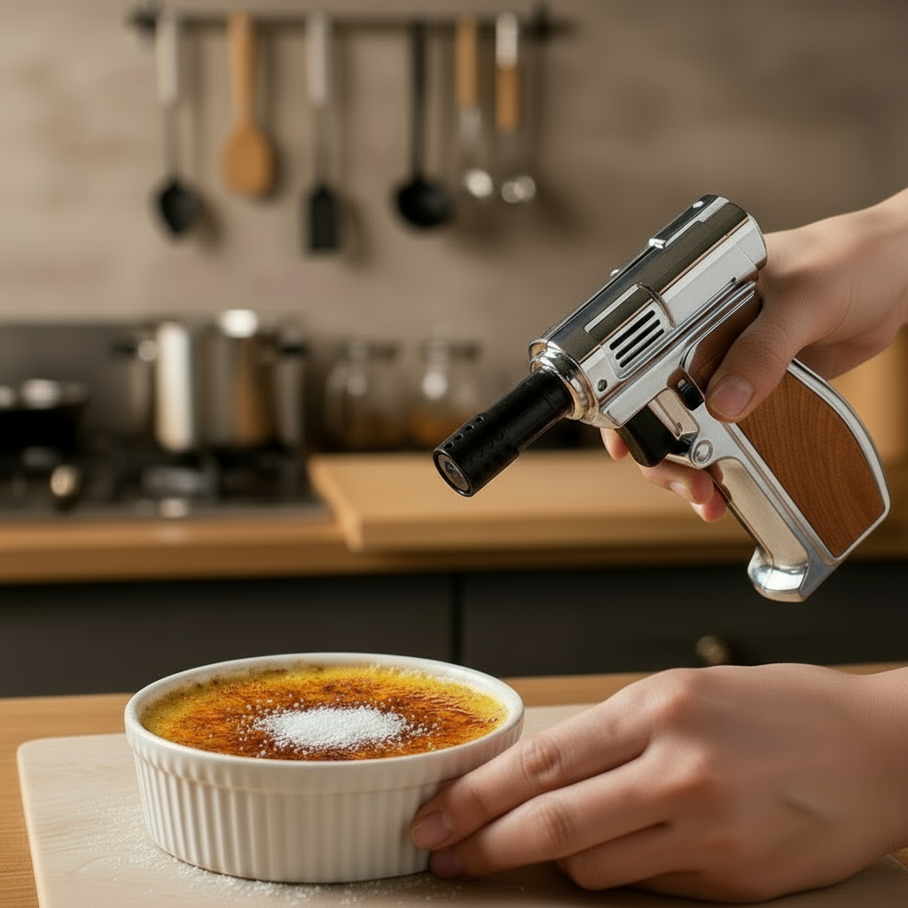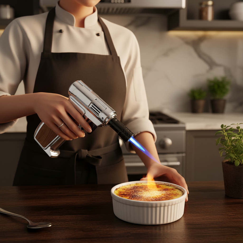 It is a butane rechargeable device that delivers a strong, adjustable flame, perfect for cooking, lighting cigars, or starting fires