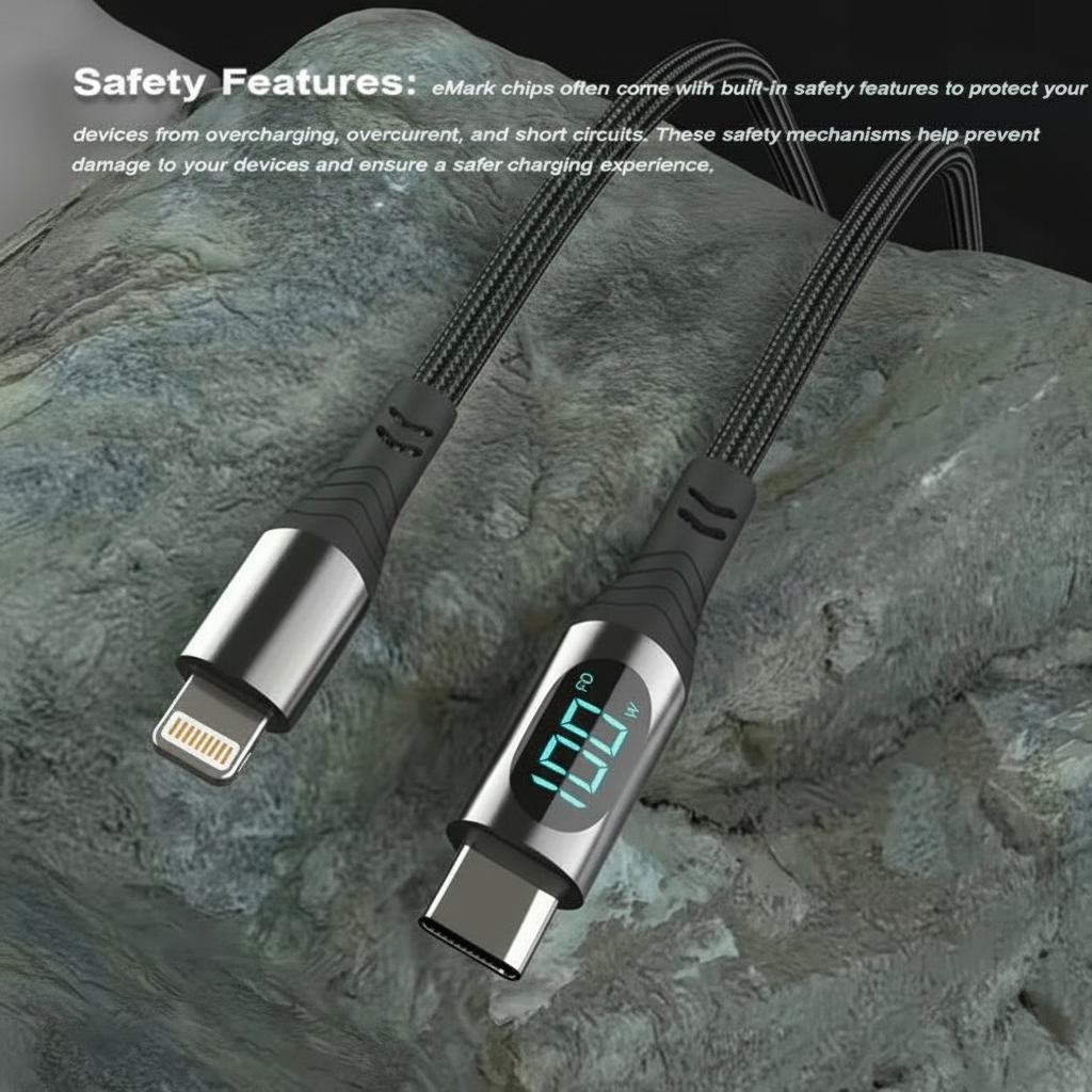 LED 4ft Type C to iPhone Charging Cable, 100W