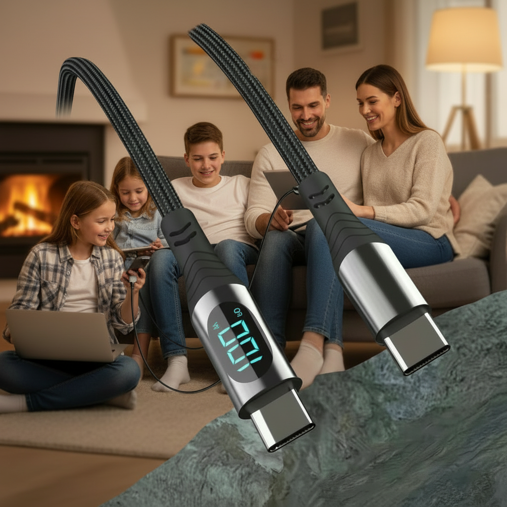 LED 6.5ft Type-C to Type-C Charging Cable, 100W