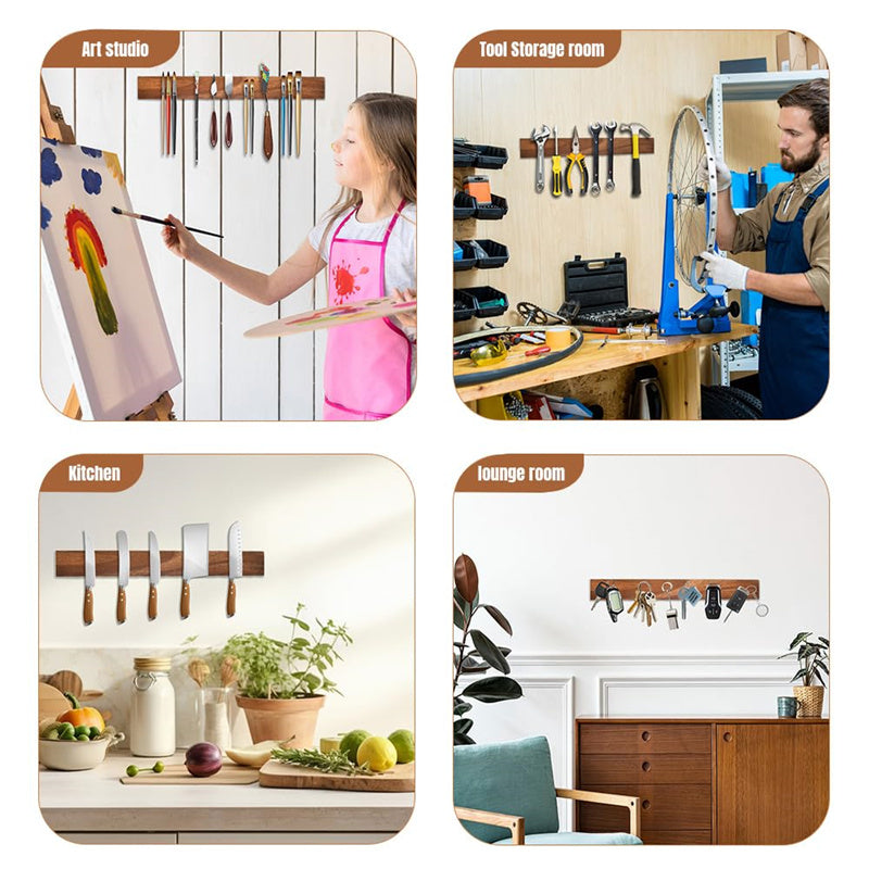 Equipped with ultra-strong Neodymium magnets, it keeps your knives securely in place.