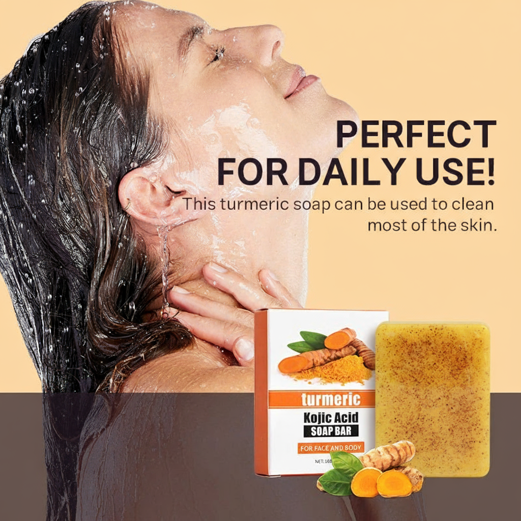 Experience the brightening power of Turcuma (Turmeric) and Kojic Acid in this 100g Handmade Scrub Soap