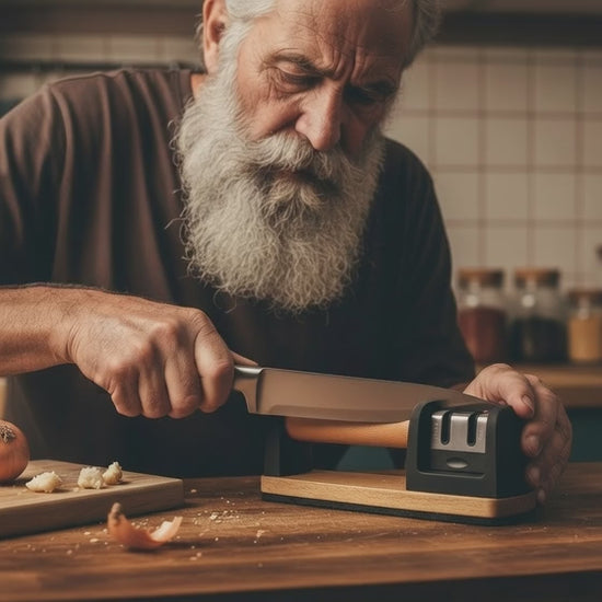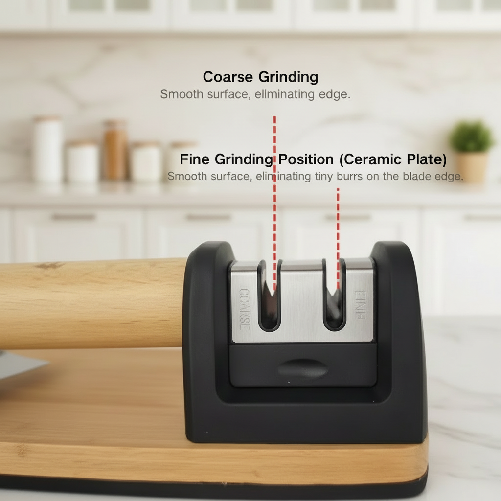 Equipped with a non-slip rubber base beneath the wooden casing, it ensures stability while sharpening. Keep your knives razor-sharp, safely and effortlessly, with this premium, long-lasting tool