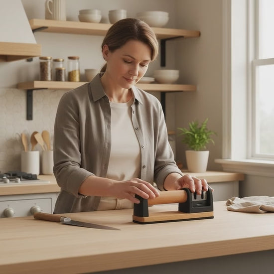 Featuring a durable natural hardwood handle that’s both stylish and built to last, this sharpener uses two-stage ceramic plates for precision honing