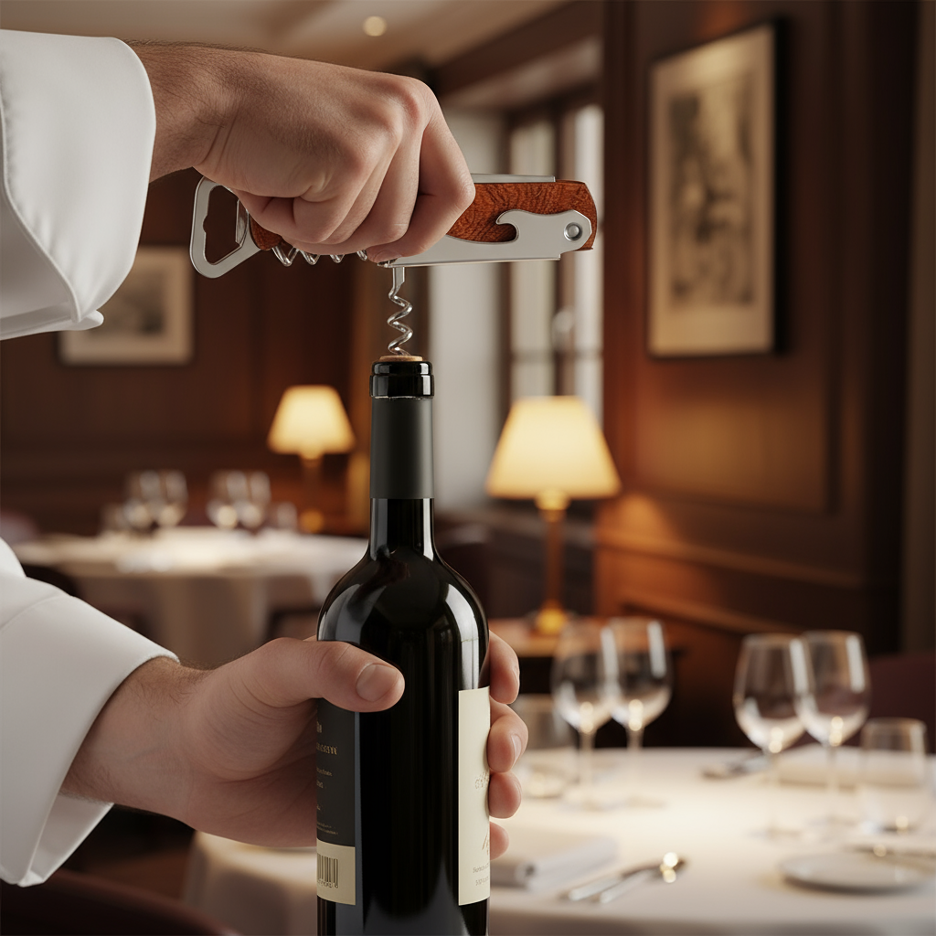 Crafted for durability and ease of use, this wine and beer bottle opener features a natural hardwood handle that provides a secure, non-slip grip