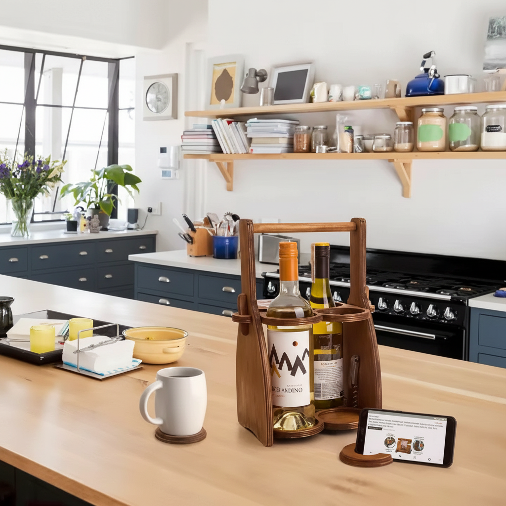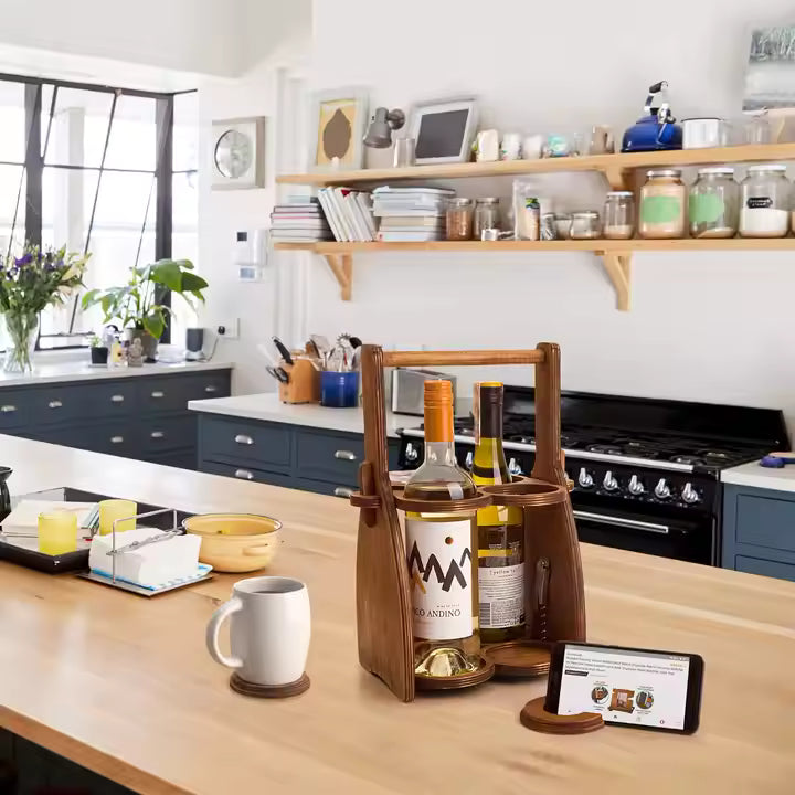 Carry your wine and beer in style with this all-in-one basket designed to hold bottles and glasses securely. Made from durable Pakkawood material for long-lasting stay